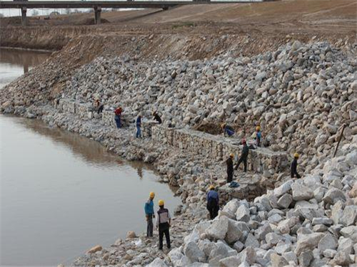 5.放置 綁好后,用機(jī)器小心將石籠網(wǎng)一個(gè)一個(gè)或兩個(gè)兩個(gè)的吊放到恰當(dāng)位置。為了保證質(zhì)量,石籠網(wǎng)縫邊、組裝時(shí)應(yīng)用較粗的邊絲和綁絲。
