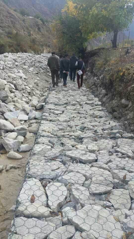 雷諾護墊是厚度在0.17-0.3m的網(wǎng)箱結(jié)構(gòu),在現(xiàn)場用于裝填石頭。主要用作河道、岸坡、路基邊坡護坡結(jié)構(gòu)。既可防止河岸遭水流、風(fēng)浪侵襲而破壞,又實現(xiàn)了水體與坡下土體間的自然對流交換功能,達到生態(tài)平衡。坡上植綠可增添景觀、綠化效果。