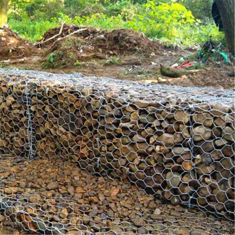 格賓網(wǎng)也稱重型六角網(wǎng)、擰花網(wǎng)、石籠網(wǎng)、三絞節(jié)機(jī)編網(wǎng)、雙絞格網(wǎng)是金屬線材編織的角形網(wǎng)(六角網(wǎng))制成的網(wǎng)箱,使用的金屬線徑是根據(jù)六角形的大小而不同.如果是金屬鍍層的金屬線六角形,則使用線徑為2.0mm到4.0mm的金屬線,如果是PVC包覆的金屬線編織的六角網(wǎng),則使用外徑為3.0mm到4.5mm的PVC(金屬)線.外框邊緣的線則使用比六角網(wǎng)線粗一號(hào)的線。格賓網(wǎng)是由經(jīng)表面防蝕處理的低碳鋼絲用機(jī)械編織的雙鉸六角形柔性金屬網(wǎng)經(jīng)剪裁,編邊和組合后制成的各種規(guī)格的網(wǎng)籠。