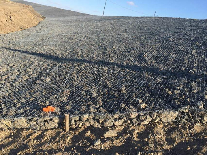 雷諾護(hù)墊是指由機(jī)編雙絞合六邊形金屬網(wǎng)面構(gòu)成的厚度遠(yuǎn)小于長(zhǎng)度和寬度的墊形工程構(gòu)件,其中裝入塊石等填充料后連接成一體,成為主要用于水利堤防、岸坡、海曼等的防沖刷結(jié)構(gòu),具有柔性、對(duì)地基適應(yīng)性的優(yōu)點(diǎn)。