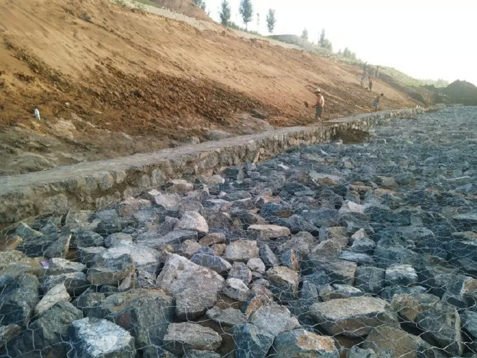 固濱籠具有固堤防沖刷的作用, 固濱籠工藝是指將特種鋼絲由專用機(jī)械編織成雙絞、蜂巢形網(wǎng)目的格網(wǎng)片,根據(jù)工程設(shè)計(jì)要求,裁剪、設(shè)計(jì)、組裝成箱籠并裝入塊石等填充料后連接成一體的結(jié)構(gòu),用作提防、路基防護(hù)工程。