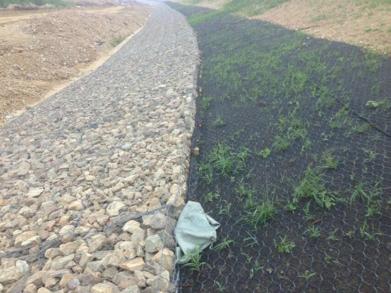 加筋麥克墊作為一種土工墊,它在具有一般土工墊優(yōu)良的抗侵蝕性能之外,還具備著比其更完美的防沖刷性能和機(jī)械張拉力,所以,它可以在防護(hù)邊坡表層被沖刷時(shí)具有很好的應(yīng)用。土工材料的本質(zhì)是聚丙烯,而混合了10%的鋁鋅合金鋼絲后,則對腐蝕產(chǎn)生了非常強(qiáng)的防范效果。因?yàn)榧咏铥溈藟|存在孔隙,所以在結(jié)構(gòu)中進(jìn)行填土?xí)r對于誰的排出非常有利,故而在土體表面會很快降低孔隙中水對其產(chǎn)生的壓力大大地保證了土體的抗剪強(qiáng)度,也在很大程度上穩(wěn)定了整個(gè)結(jié)構(gòu)。