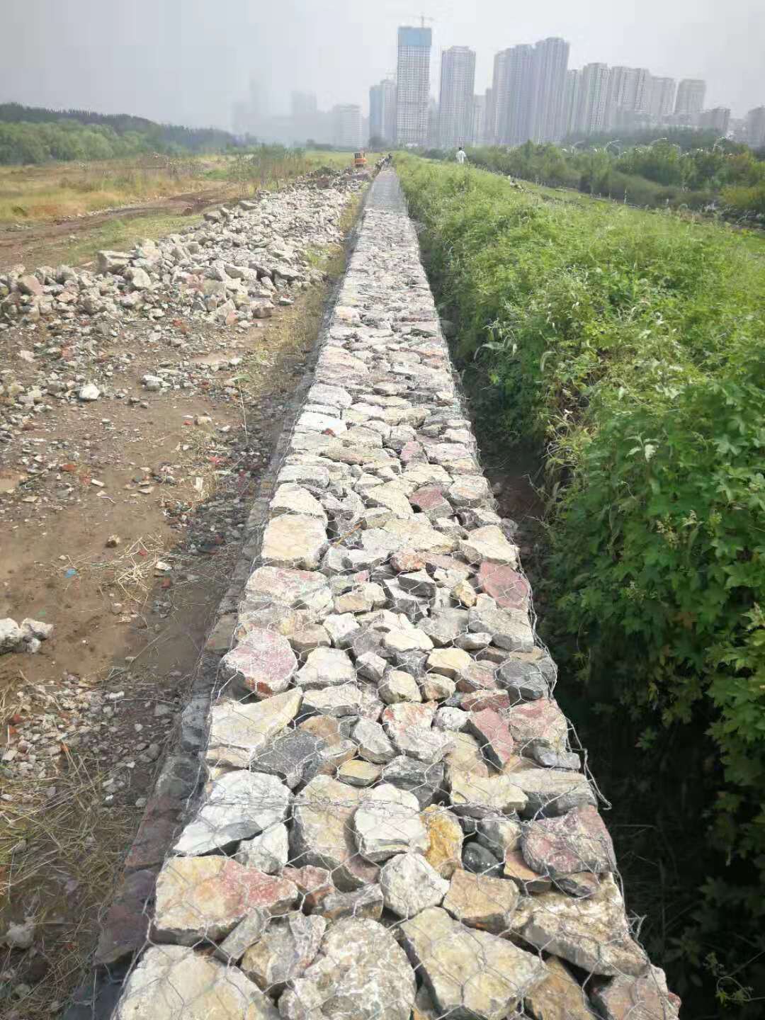 5.放置 綁好后,用機器小心將石籠網(wǎng)一個一個或兩個兩個的吊放到恰當(dāng)位置。為了保證質(zhì)量,石籠網(wǎng)縫邊、組裝時應(yīng)用較粗的邊絲和綁絲。
