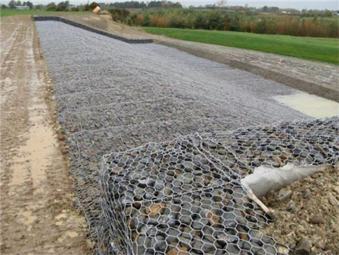 雷諾護墊是指由機編雙絞合六邊形金屬網(wǎng)面構(gòu)成的厚度遠小于長度和寬度的墊形工程構(gòu)件,其中裝入塊石等填充料后連接成一體,成為主要用于水利堤防、岸坡、海曼等的防 沖刷結(jié)構(gòu),具有柔性、對地基適應(yīng)性的優(yōu)點。