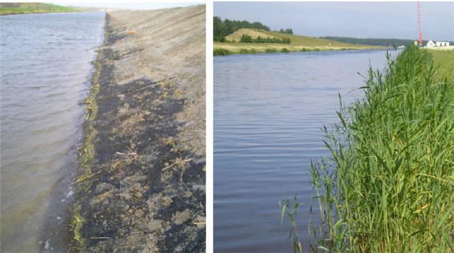 4、可實(shí)施植被綠化,人工鋪設(shè)的土層或土壤在加筋麥克墊工程填充料間的間隙中自然沉積,為綠化植被創(chuàng)造了生存環(huán)境,無需撒種,植物也會(huì)在沉積的泥土中自然長(zhǎng)出。自然生長(zhǎng)的植物抗逆性強(qiáng),適應(yīng)當(dāng)?shù)貧夂虻乩砩L(zhǎng)條件,能夠長(zhǎng)時(shí)間維持水邊的植被環(huán)境,實(shí)現(xiàn)優(yōu)化、美化環(huán)境、改善生態(tài)環(huán)境