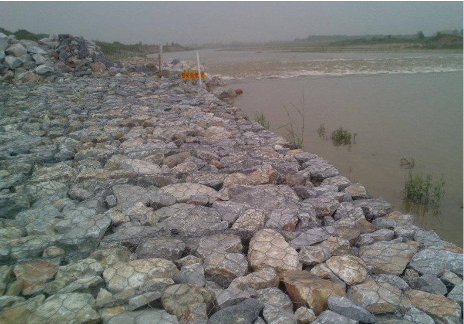 雷諾護(hù)墊是指由機(jī)編雙絞合六邊形金屬網(wǎng)面構(gòu)成的厚度遠(yuǎn)小于長度和寬度的墊形工程構(gòu)件,其中裝入塊石等填充料后連接成一體,成為主要用于水利堤防、岸坡、海曼等的防 沖刷結(jié)構(gòu),具有柔性、對(duì)地基適應(yīng)性的優(yōu)點(diǎn)。