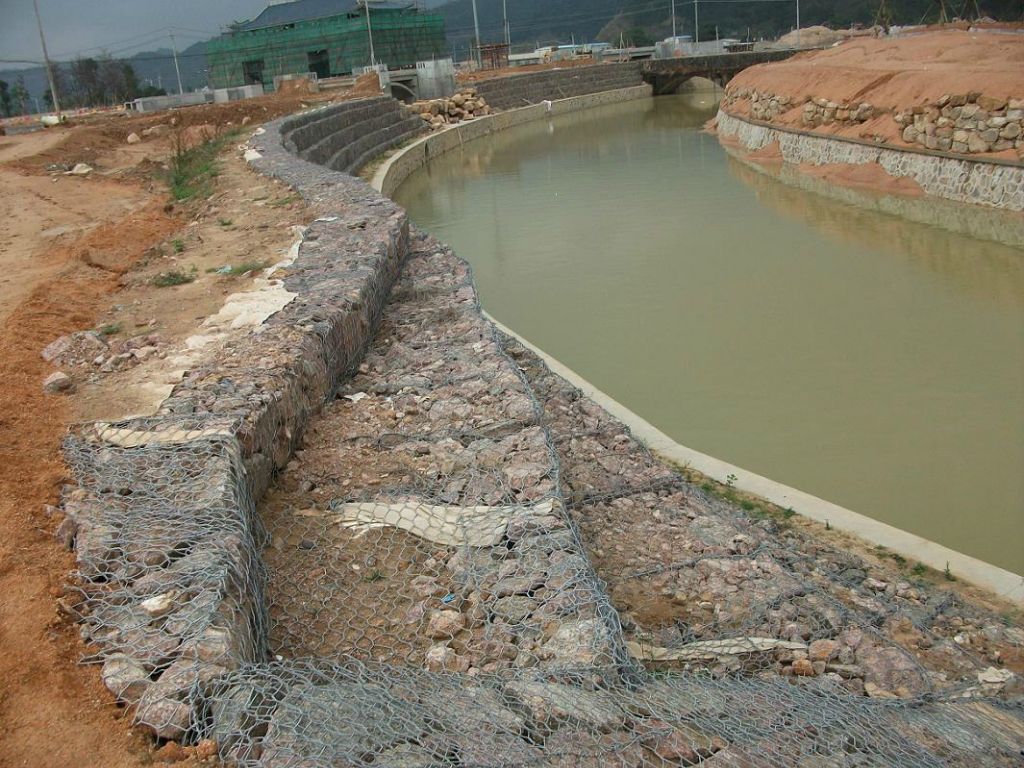 雷諾護(hù)墊也叫格賓護(hù)墊、石籠護(hù)墊由六角網(wǎng)的網(wǎng)片隔板將護(hù)墊分隔成幾個(gè)單元格,這樣可以增加護(hù)墊的強(qiáng)度,既可防止河岸遭水流、風(fēng)浪侵襲而破壞又實(shí)現(xiàn)了水體與坡下土體間的自然對(duì)流功能,達(dá)到生態(tài)平衡。雷諾護(hù)墊拋撒土壤,可以種植綠色植被,坡上植綠可增添景觀綠化效果。