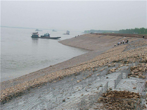 雷諾護(hù)墊是指由機(jī)編雙絞合六邊形金屬網(wǎng)面構(gòu)成的厚度遠(yuǎn)小于長度和寬度的墊形工程構(gòu)件,其中裝入塊石等填充料后連接成一體,成為主要用于水利堤防、岸坡、海曼等的防 沖刷結(jié)構(gòu),具有柔性、對地基適應(yīng)性的優(yōu)點(diǎn)。