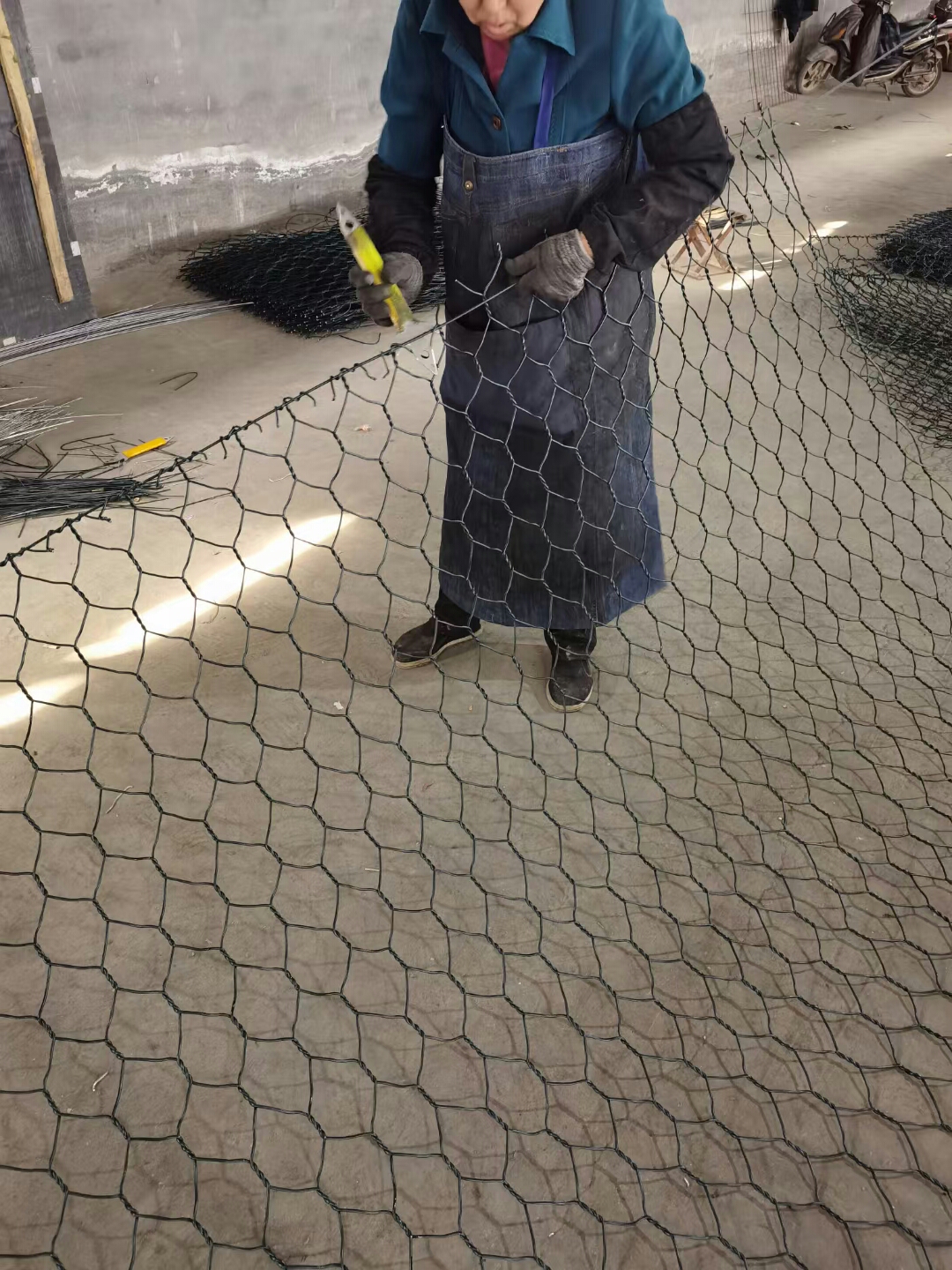 箱型石籠由大規(guī)格六角網(wǎng)聯(lián)結(jié)而成,施工中只需將石塊裝入籠中封口即可。