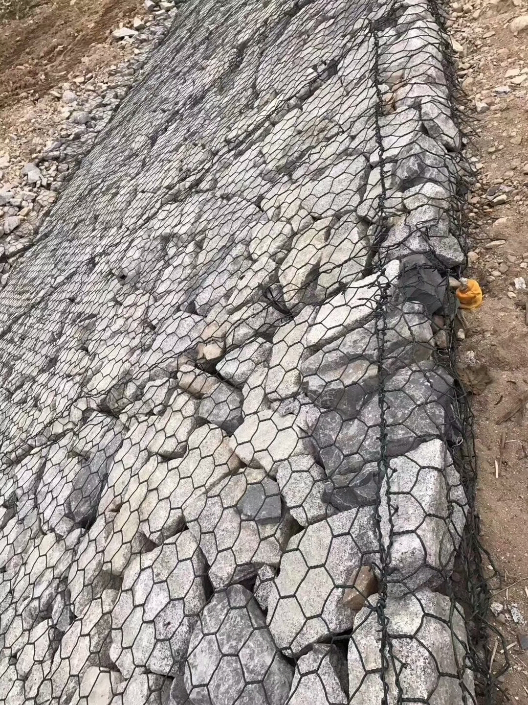 4、石頭的擺放要牢固、上面要平,填縫的小石塊要大于網(wǎng)眼,否則不能使用表面。完成裝石后要進(jìn)行自檢和聯(lián)合檢測,合格后進(jìn)行封蓋。