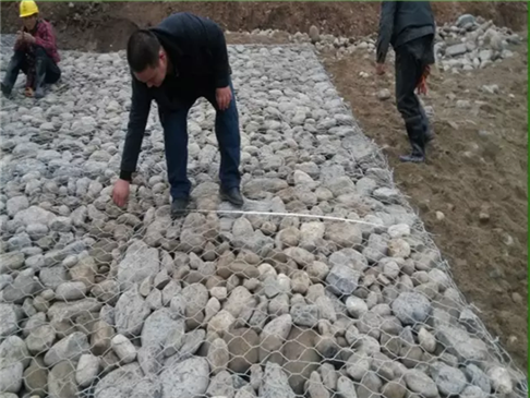 雷諾護墊又名格賓墊雷諾護墊是以經(jīng)鍍覆表面防腐處理的低碳鋼絲,采用六邊形雙絞合工藝,用機器編織而成的鋼絲網(wǎng)面制成的墊狀工程防護構(gòu)件。墊中填以合乎要求的石塊,共同構(gòu)成岸坡護砌結(jié)構(gòu)。其結(jié)構(gòu)具有整體性,柔性,經(jīng)濟性及施工便捷等諸多優(yōu)點,主要應(yīng)用于堤坡,岸坡坡面防沖刷護砌和河(渠)床底,坡腳等淘刷防護。雷諾護墊技術(shù)特點:高強度,高柔韌性,抗腐蝕性,整體性優(yōu)良的壓載性能,良好的透水性和促淤性,施工便捷,經(jīng)濟,環(huán)保。