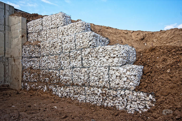 六角金屬網(wǎng)箱格賓網(wǎng)填裝石塊