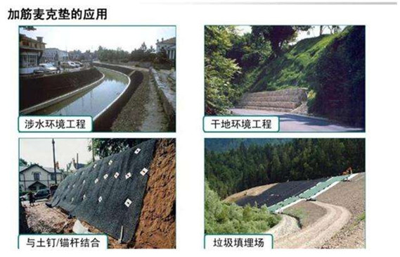 加筋麥克墊是一種坡面輕型防護材料,可用于水利、航道、公路、鐵路、礦業(yè)、地災、市政以及環(huán)境工程中的岸坡防護,主要作用在于固定表層土防止水土流失,并且加速綠化。也可以用于流速較低的河道岸坡防護。