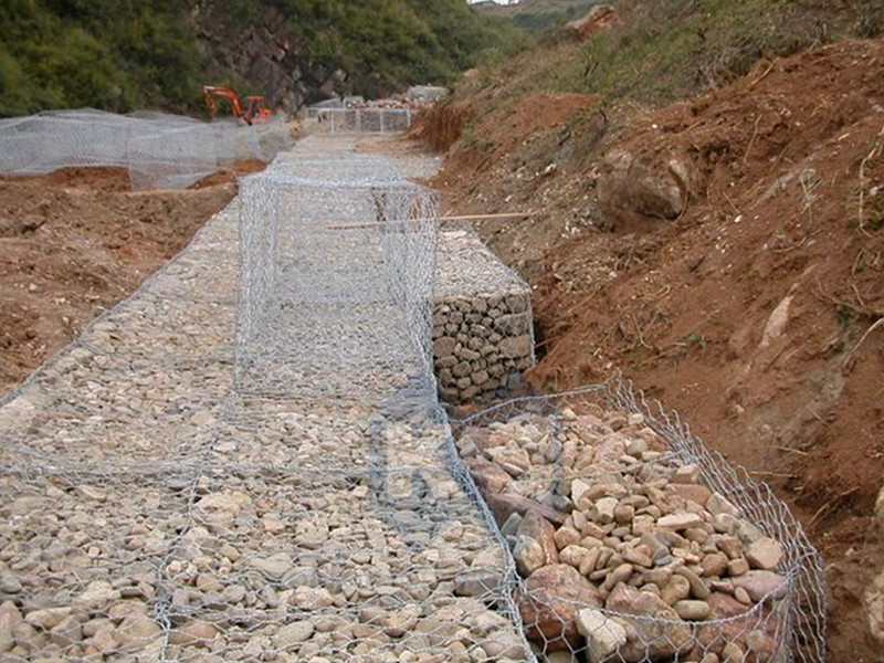 箱型石籠由大規(guī)格六角網(wǎng)聯(lián)結(jié)而成,施工中只需將石塊裝入籠中封口即可。