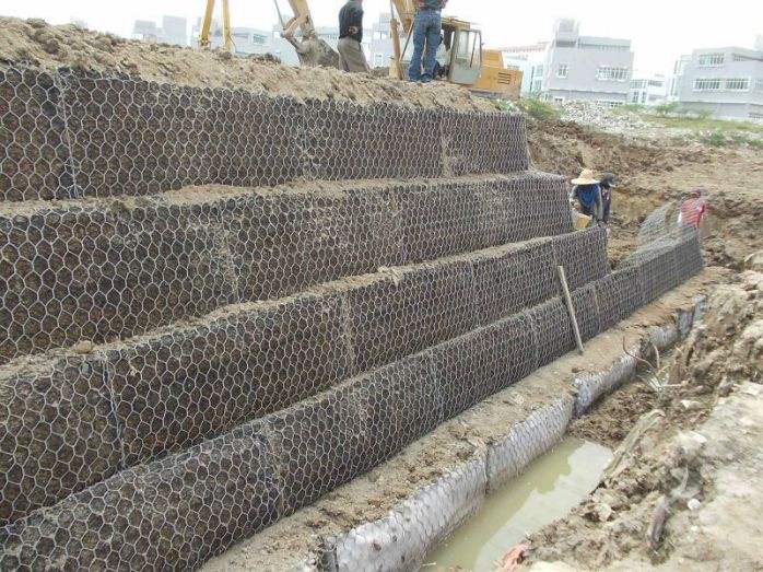 賓格網(wǎng)防護(hù)體可按設(shè)計要求,進(jìn)行工廠化生產(chǎn)制作出半成品,施工現(xiàn)場僅需組裝定型,灌充填料,操作簡便,尤其是受氣候因素干擾小,適宜于機(jī)械化施工。