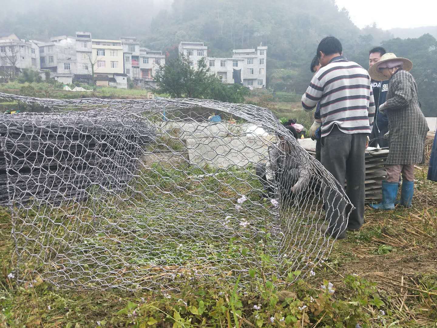 1.施工簡單,只需將折疊好的網(wǎng)箱展開,用綁扎絲固定好,裝入石塊封蓋即可