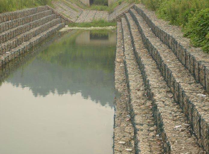 雷諾護(hù)墊是厚度在0.17-0.3m的網(wǎng)箱結(jié)構(gòu),在現(xiàn)場(chǎng)用于裝填石頭。主要用作河道、岸坡、路基邊坡護(hù)坡結(jié)構(gòu)。既可防止河岸遭水流、風(fēng)浪侵襲而破壞,又實(shí)現(xiàn)了水體與坡下土體間的自然對(duì)流交換功能,達(dá)到生態(tài)平衡。坡上植綠可增添景觀、綠化效果。