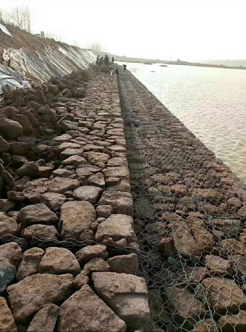 綠濱墊具有固堤防沖刷的作用,?固濱籠工藝是指將特種鋼絲由專用機(jī)械編織成雙絞、蜂巢形網(wǎng)目的格網(wǎng)片,根據(jù)工程設(shè)計(jì)要求,裁剪、設(shè)計(jì)、組裝成箱籠并裝入塊石等填充料后連接成一體的結(jié)構(gòu),用作提防、路基防護(hù)工程。