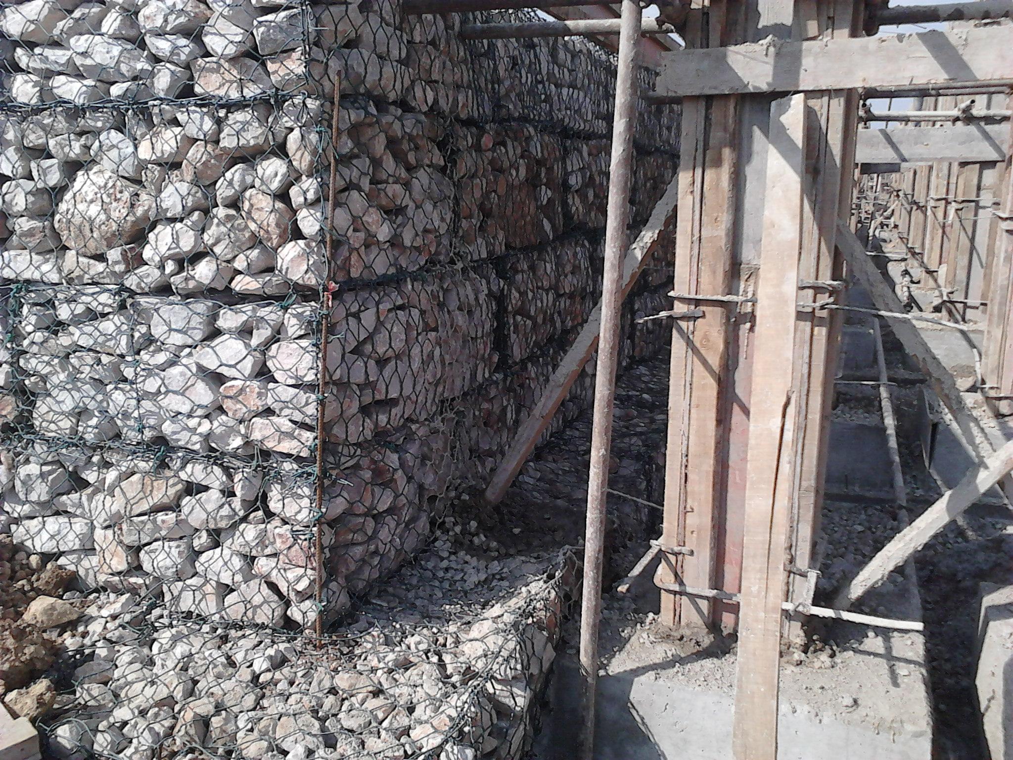 格賓網(wǎng)箱擋土墻結(jié)構(gòu)系柔性結(jié)構(gòu),當(dāng)?shù)卣甬a(chǎn)牛的縱波和橫波對結(jié)構(gòu)產(chǎn)牛作用時,結(jié)構(gòu)會隨之協(xié)調(diào)變形從而釋放能量。同時由于合金鋼絲的延展性,結(jié)構(gòu)允許的變形會很大而不會造成結(jié)構(gòu)的破壞。同時網(wǎng)箱內(nèi)的石塊由于網(wǎng)箱的約束而不會使結(jié)構(gòu)松散。在一些地震多發(fā)地帶,此種柔性結(jié)構(gòu)在經(jīng)歷數(shù)次地震后依然可以繼續(xù)安全運行。